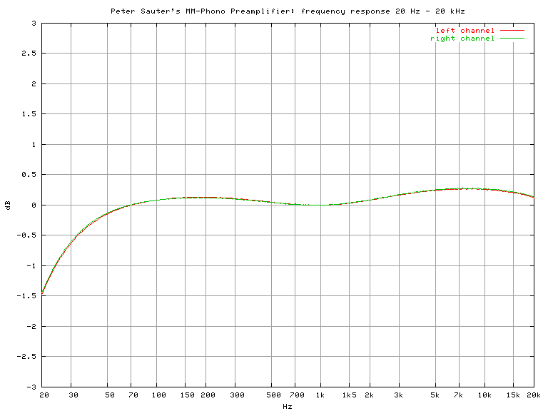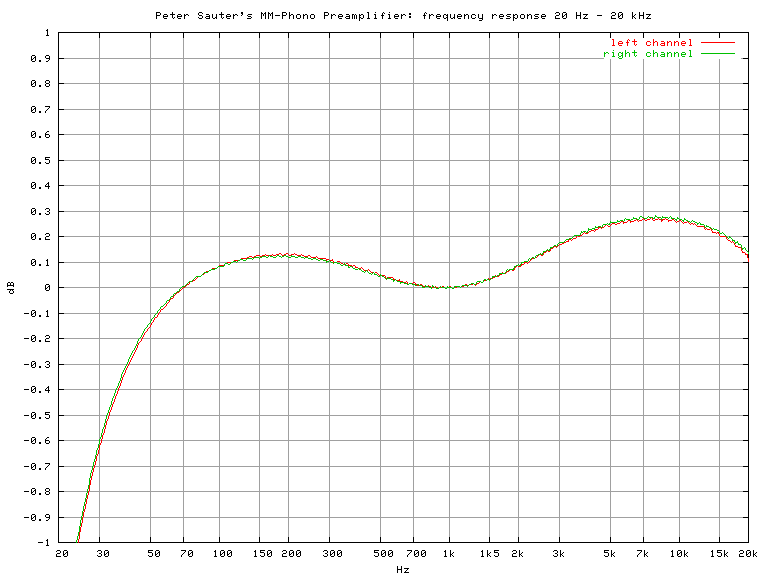 Spektrum der RIAA Preemphase verrechnet, um die Abweichung